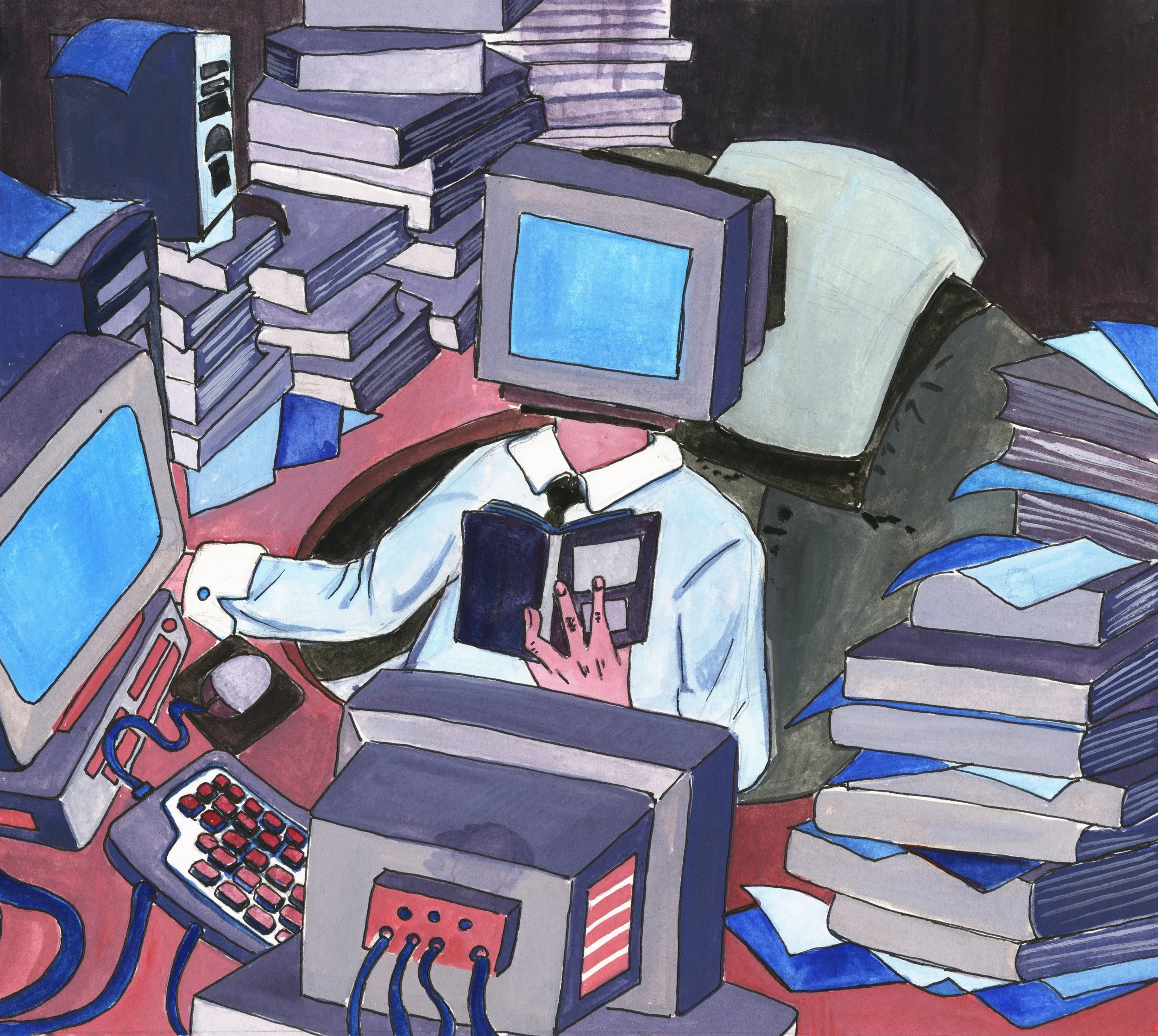 Computer Head is working hard with all the computers surrounding around him. He’s doing his best, but also looks like this is a piece of cake for him it seems! What do you think? Enjoy this slice of life moment of Computer Head at work! Not my favorite moment!